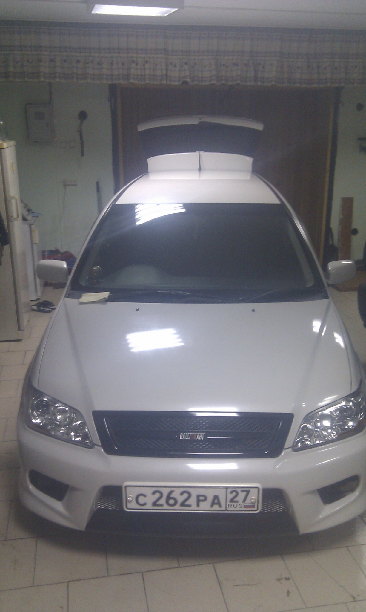 Произведена некоторая доработка....поставлен буст-контроллер, датчик буста механический, поставлены обвесы от Rally Art'a и распорка передняя под капотом, заменена панель приборов от ЭВО 7-го на автомате, убраны катализаторы и поставлена трасса с банкой + байпасс/блоф
